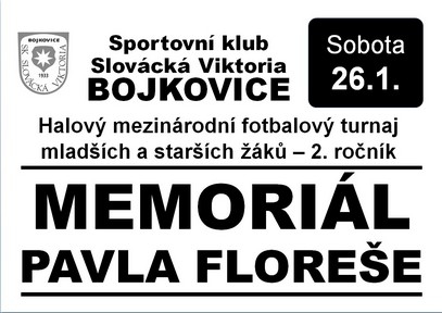 "V sobotu 26. ledna 2019 mladší žáci SK Slovácká Viktoria Bojkovice absolvovali již druhý letošní, a opět kvalitně obsazený, halový turnaj „Memoriál Pavla Floreše – 2. ročník“. Účastí slovenského týmu FK Dubnica nad Váhom byl turnaj pojat jako mezinárodní.